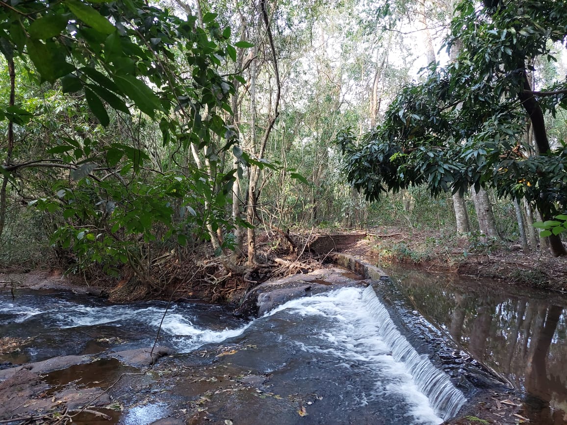 A academia oferece equipamentos essenciais para treinos leves e funcionais, integrando bem-estar, saúde e rotina ativa em meio à natureza.